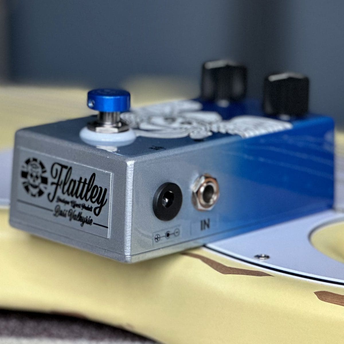 • The Bass Valkyrie comes with a blue custom etched aluminium foot topper
