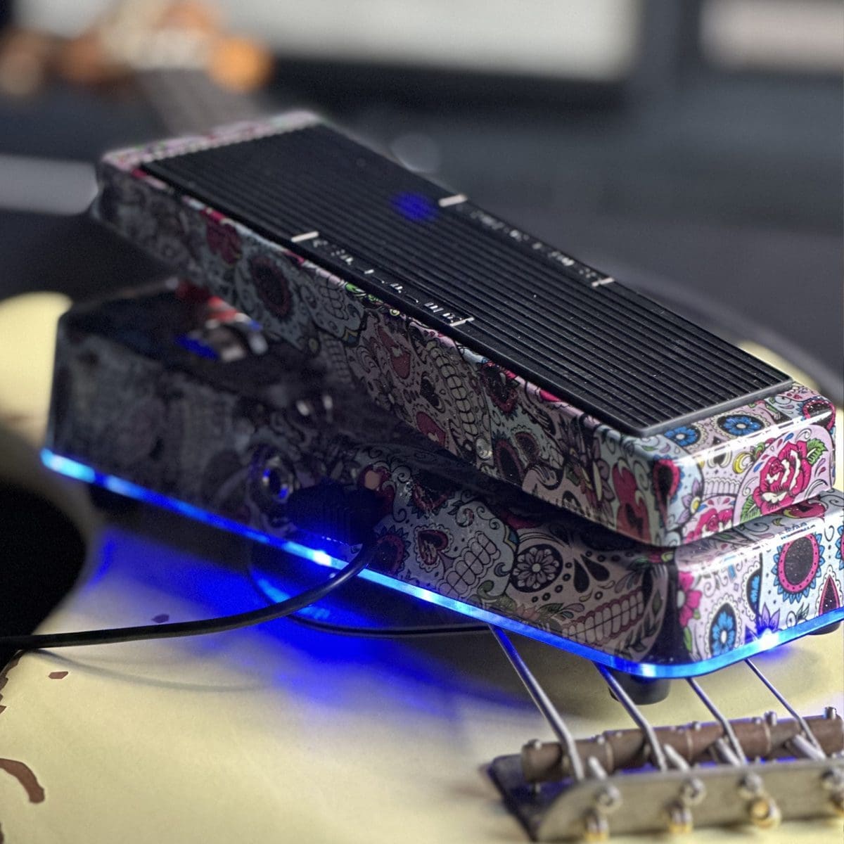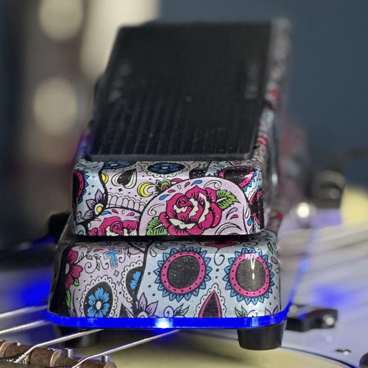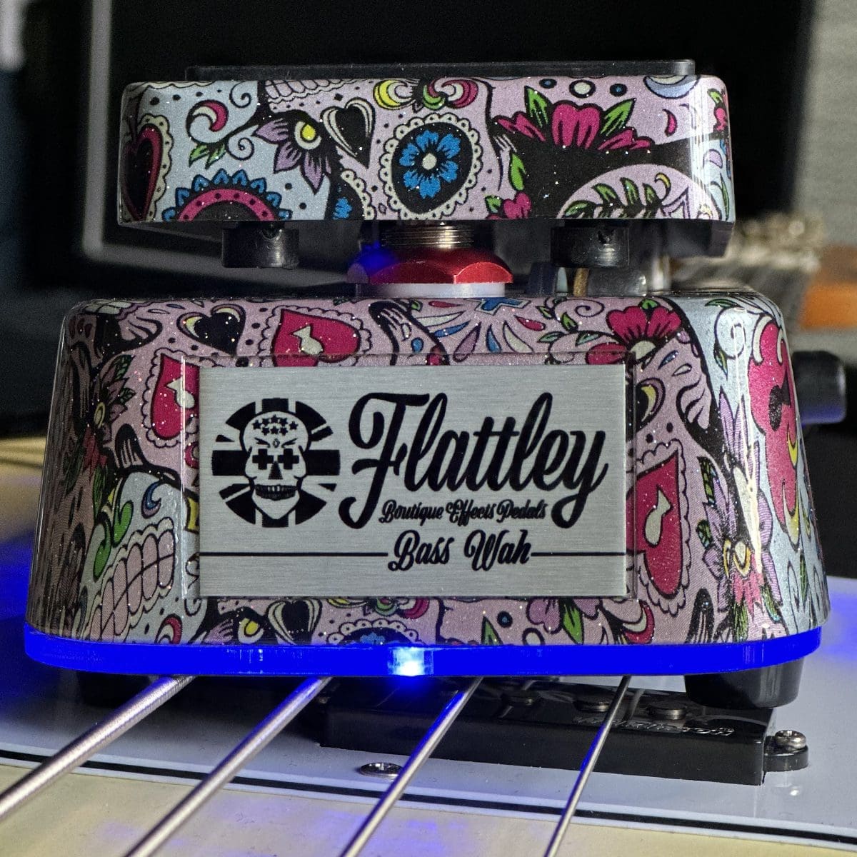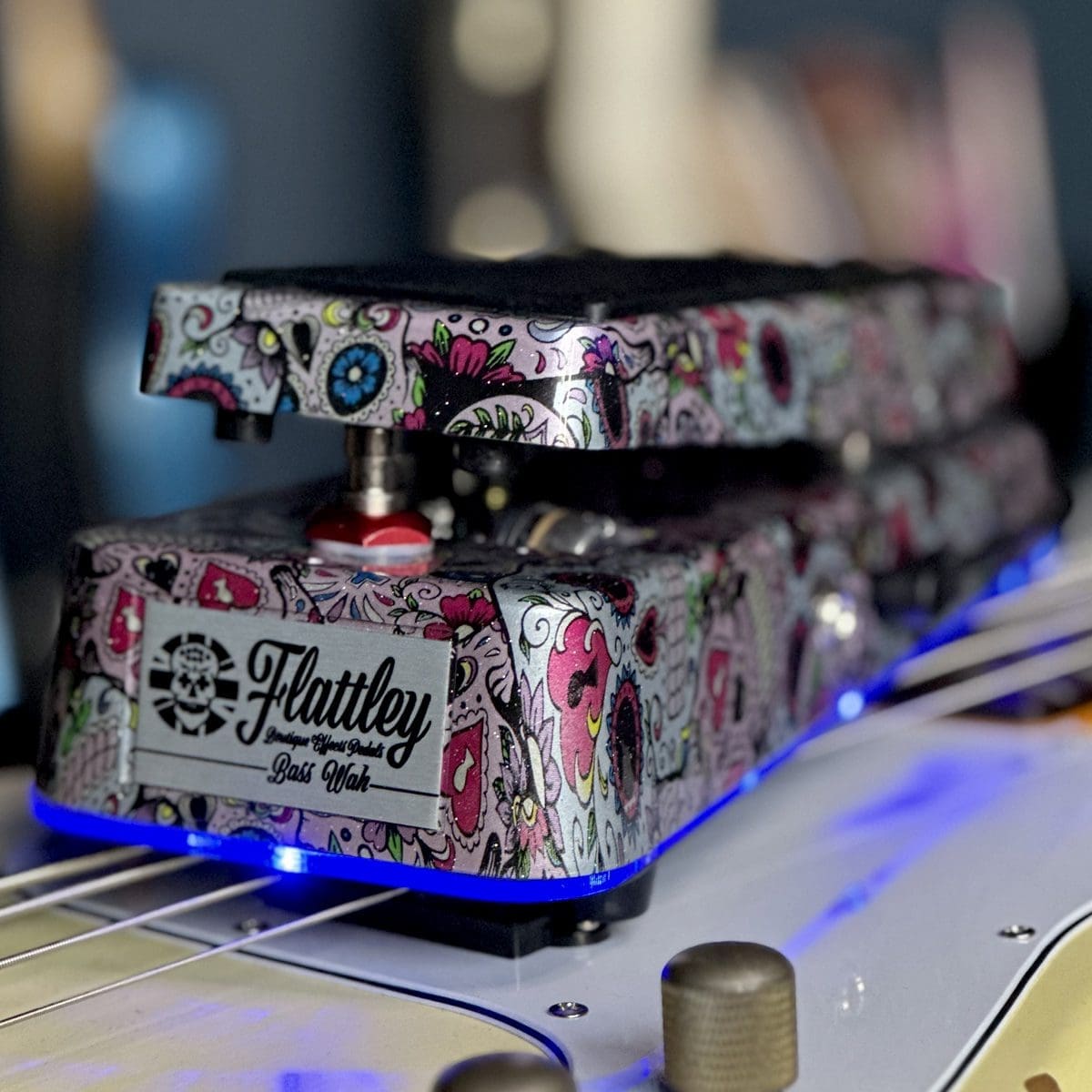 The Flattley Bass Wah comes in the “Sugar Skulls” hydro dipped graphics from our platinum range which will add some amazing artwork to any musician’s pedal board. There is also a red coloured anodised aluminium locking nut on the on/off switch to add a bit more luxury to the finish of this pedal.